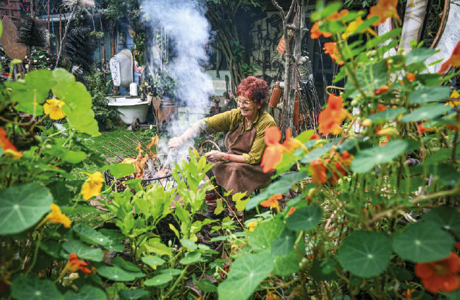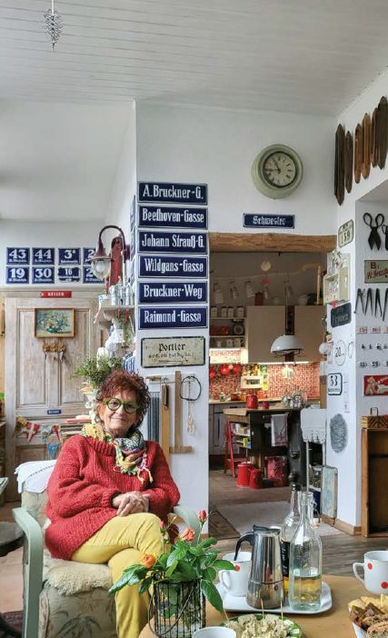 Für Elisa Greenwood ist kein Gegenstand nutzlos, und so erzählt auch ihr Wohnraum auf einzigartige Weise seine eigenen Geschichten. Der Kreativität sind hier keine Grenzen gesetzt: sie zeigt sich nicht nur in der Einrichtung des Hauses, sondern auch in den Kochkünsten der Gastgeberin. Bei Kaffee, Tee und selbst gebackenen Köstlichkeiten lausche ich Elisas Reise- und Lebenserinnerungen in einem Ambiente, in dem selbst zahlreiche Geschichten stecken.